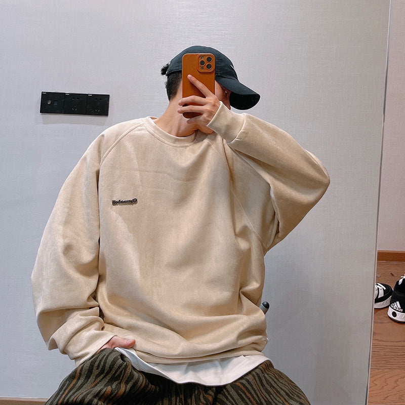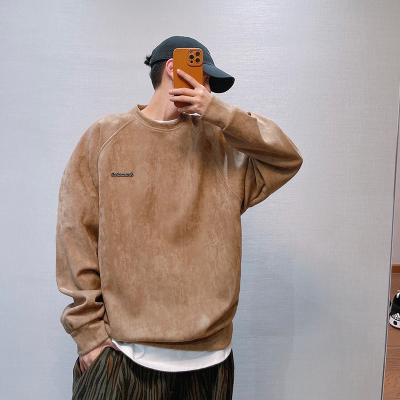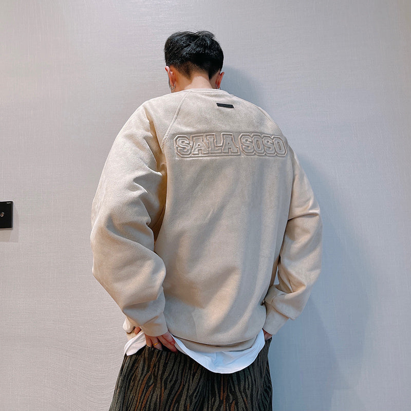 Letter Printed Deerskin Cashmere Crewneck Sweater